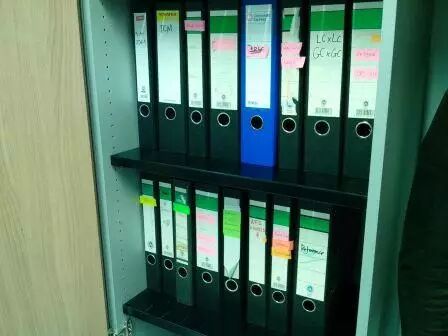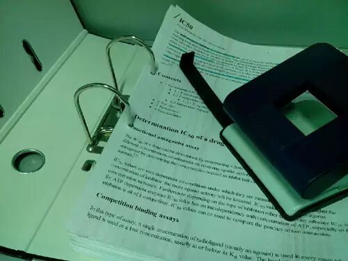 这里也提一下活页文件夹。这种简单、灵活、有效的文件管理方式,我竟然在我整个求学过程中闻所未闻,未见任何同学使用过。大家都是打印出来,订书机一订就摞在桌头上。文件多了经常滑落下来洒一地。更难受的是管理,你不能把它码整齐,也不能随手取出想要的文献。直到在歌德学院学德语才第一次接触文件夹。当时报名时,一人发一个活页文件夹,教室里有打孔器。老师发下的材料自己打孔后放入。而且还可以用隔页分类存档不同内容的资料。方方正正的文件夹,往桌子上一放就能站住,文件再多也能排放整齐。在实验室里,导师应该给每个研究生配发活页夹供学生使用,方便学生。而且学生毕业后,可以把文件夹和打印的文件同时收回,留给后续的学生使用。从而,既利于科研又避免浪费。